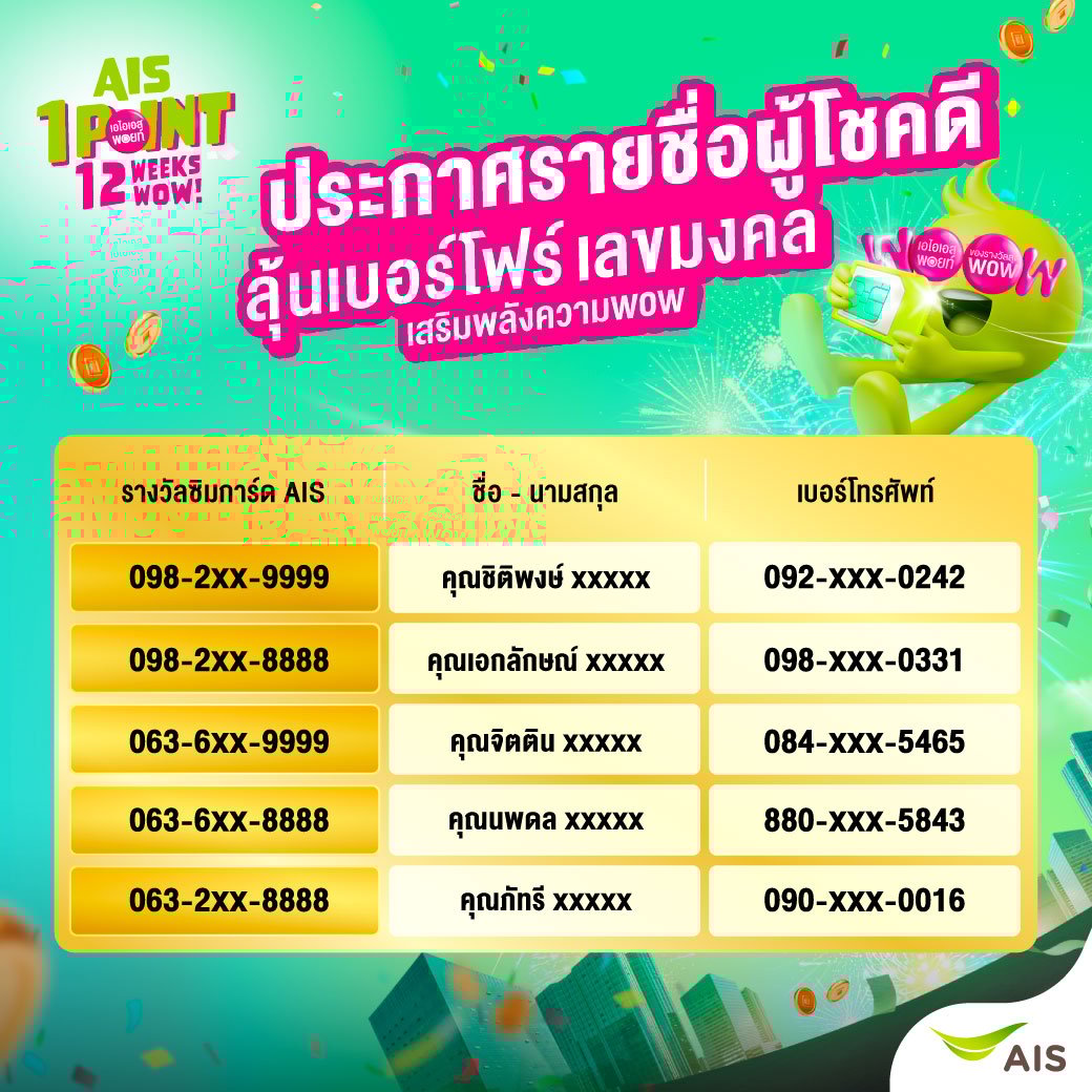6. ประกาศรายชื่อผู้โชดีทาง www.ais.th/consumers/privileges/points/pointsluckydraw