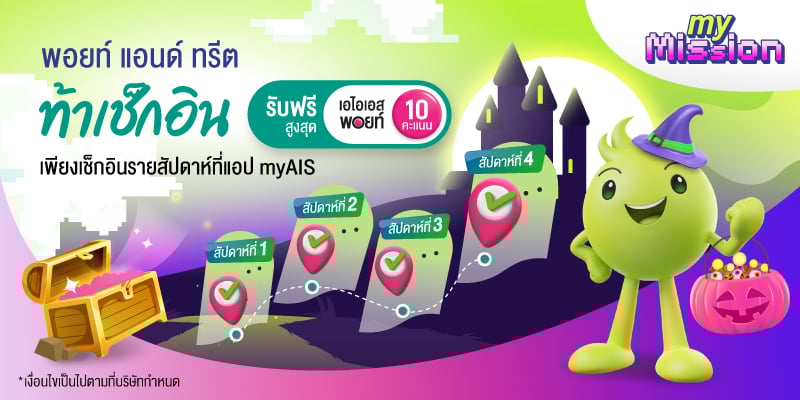 เมื่อเข้ามาเช็กอิน รับเอไอเอส พอยท์ 2 คะแนน รับเอไอเอส พอยท์ 4 คะแนน *หากเช็กอินไม่ต่อเนื่องจะได้รับ 2 คะแนน