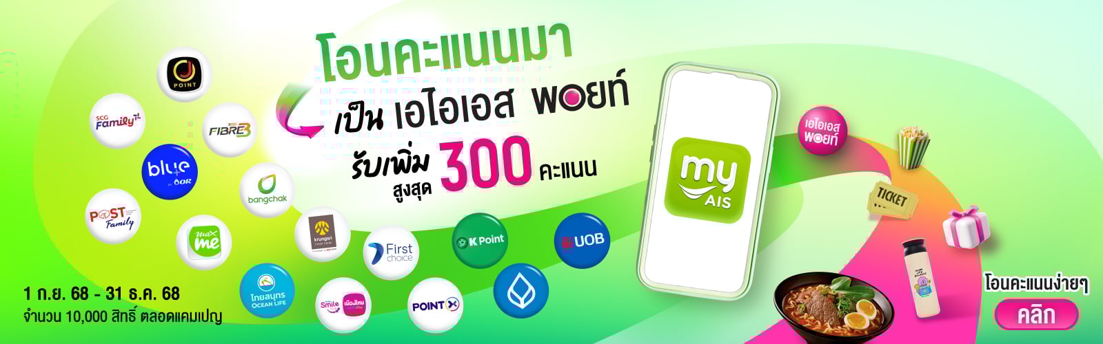 ได้รับข้อความ SMS แจ้งรับ AIS Points Bonus สำเร็จ ภายในวันที่ 10 ของเดือนถัดไป