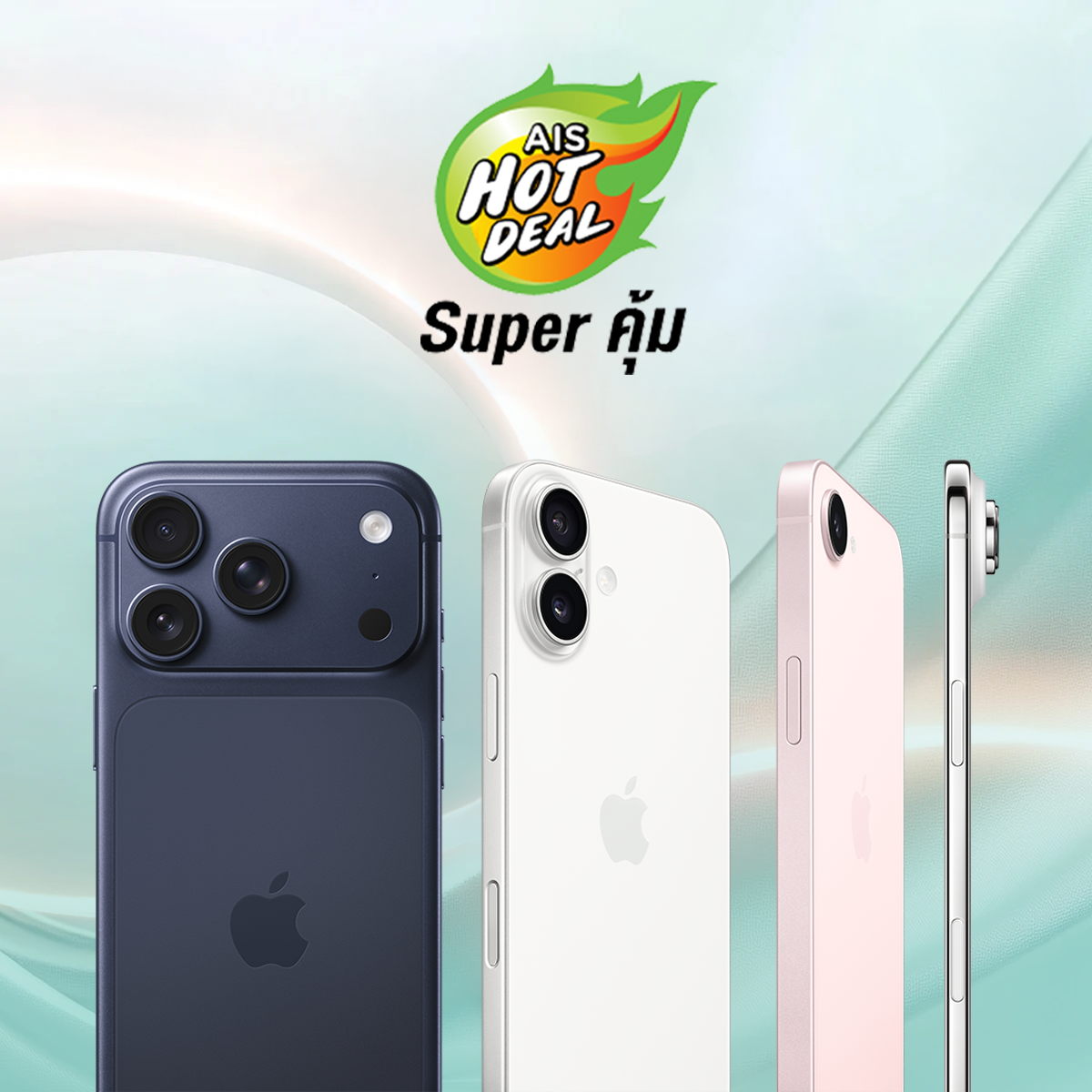 iPhone (ไอโฟน) สุดคุ้ม! AIS จัดโปรโมชัน รุ่นล่าสุด ราคาพิเศษ ผ่อน 0% ส่วนลดค่าเครื่อง สิทธิพิเศษเพียบ! เฉพาะลูกค้า AIS รับสิทธิ์ซื้อเครื่องราคาพิเศษได้ทันทีไม่ต้องรอผลย้ายค่าย