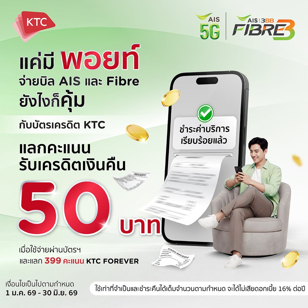 AIS Bill x KTC จ่ายบิล AIS แลกคะแนน รับเครดิตเงินคืนสูงสุด 13%​
