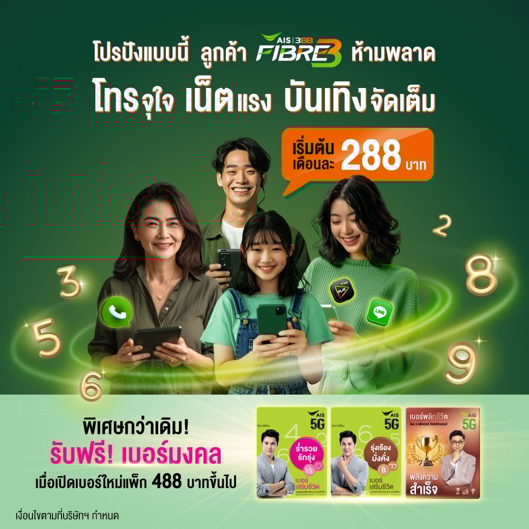 แพ็กเกจเลขมงคล เลขเศรษฐี เลขมังกร เลขเทวดา ได้ทั้งเน็ตและโทรบนเครือข่าย AIS พร้อมรับวอลเปเปอร์มงคลจาก LuckyDose ฟรี 3 เดือน
