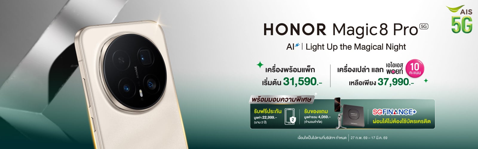 • สำหรับลูกค้าเอไอเอส ระบบรายเดือนบุคคลธรรมดา ที่เปิดเบอร์ใหม่ , ย้ายค่ายเบอร์เดิม หรือเปลี่ยนจากเติมเงินเป็นรายเดือน ที่มีการสมัครแพ็กเกจรายเดือน 399 บาทขึ้นไป