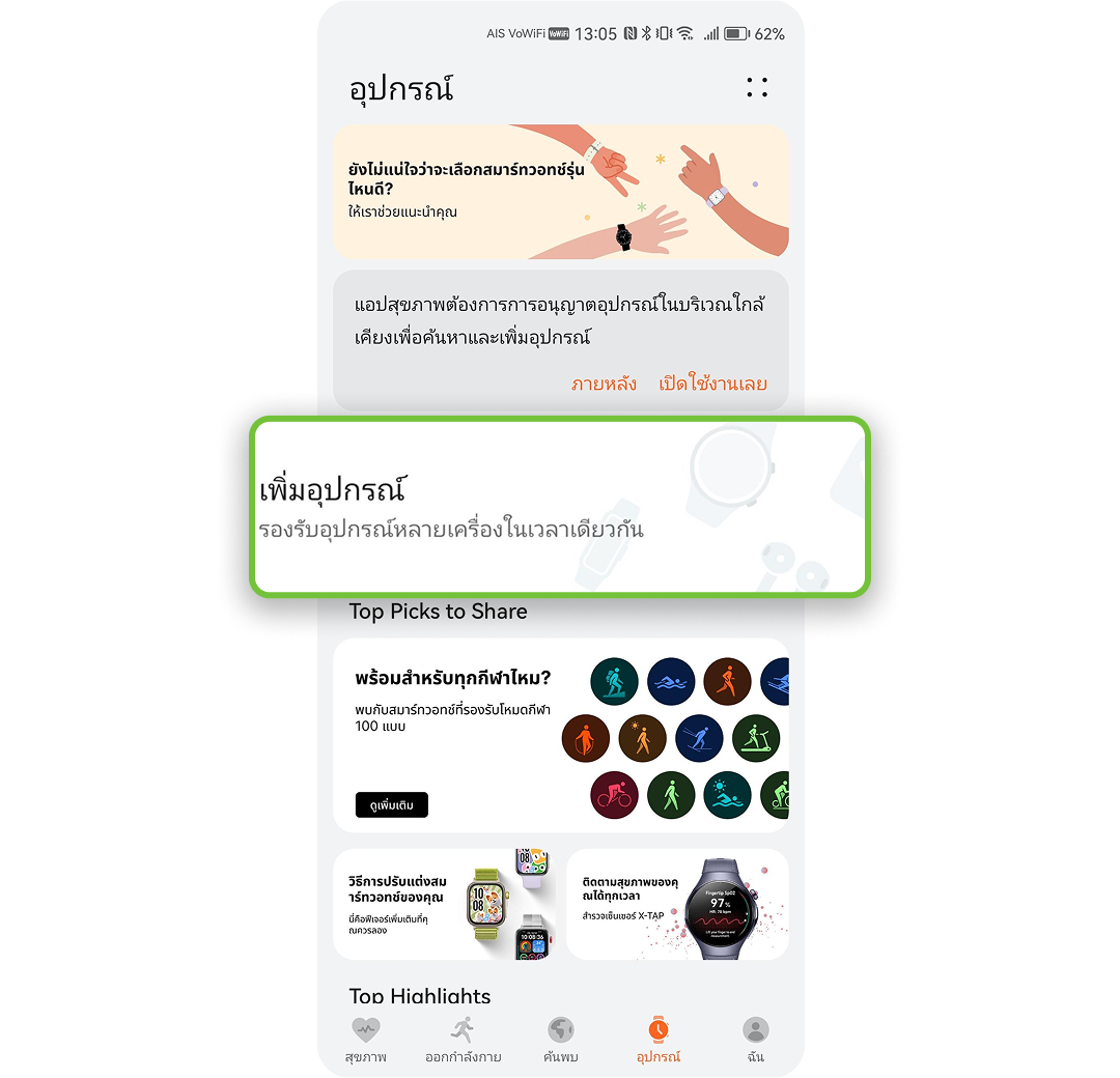 ข้อมูลเพิ่มเติมเกี่ยวกับ Apple Watch ได้ที่ https://support.apple.com/watch