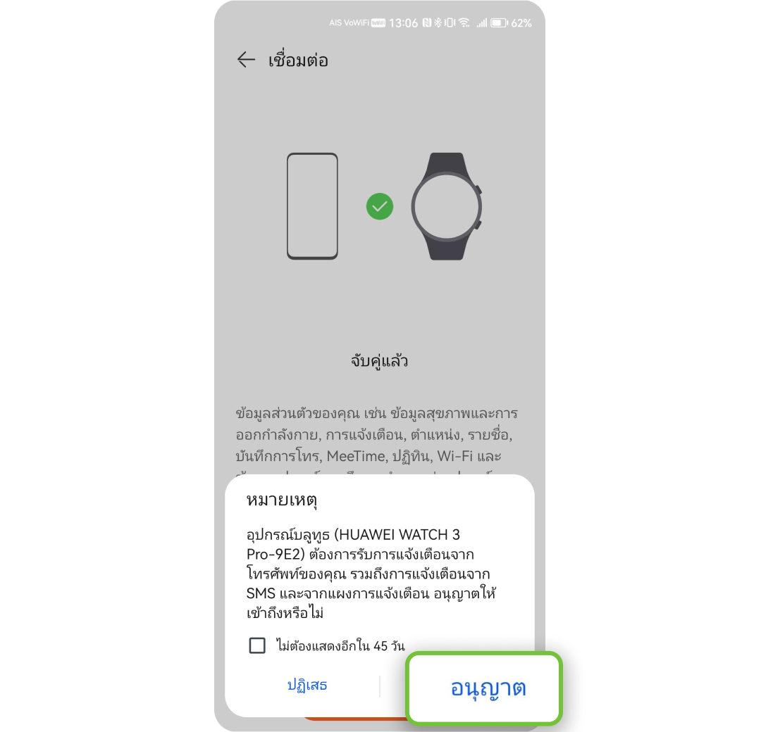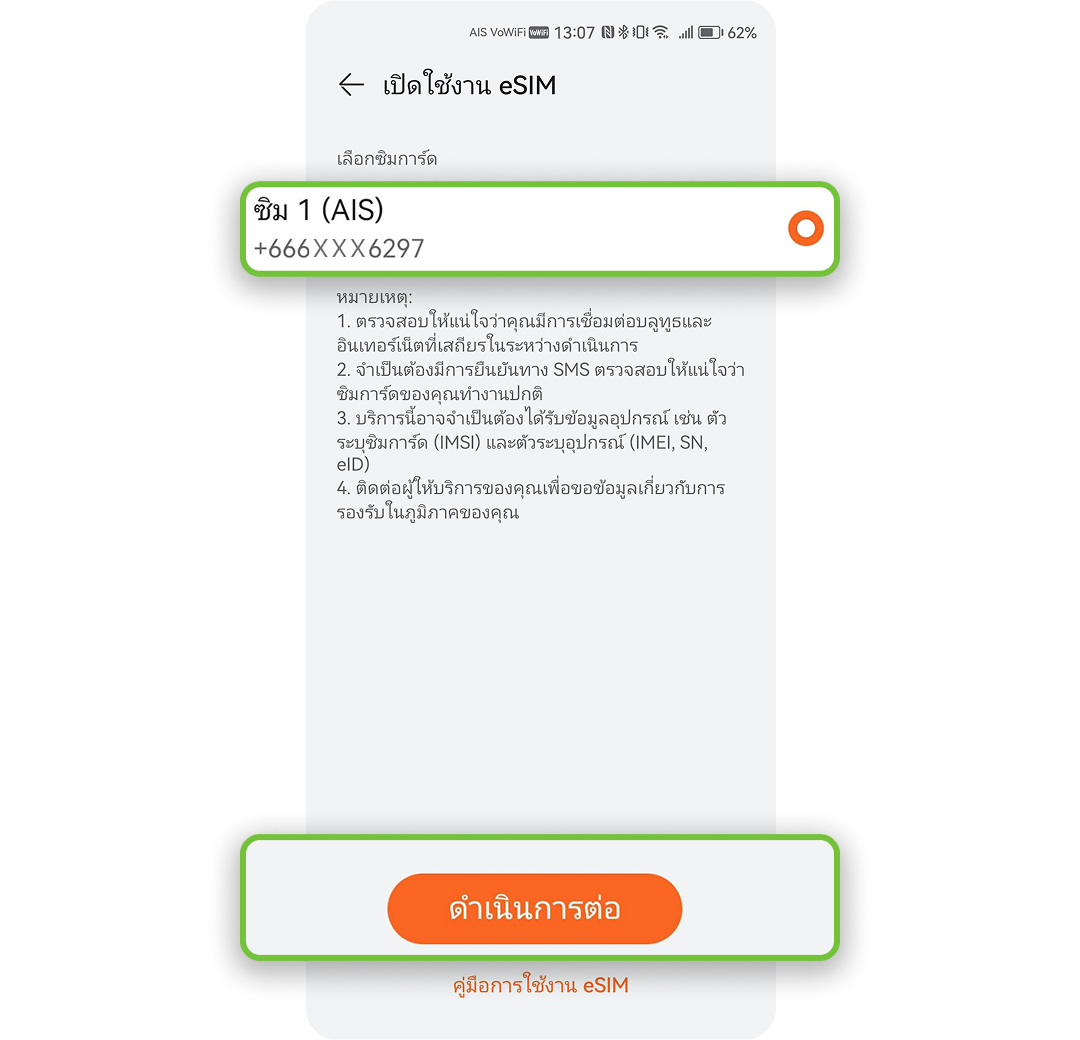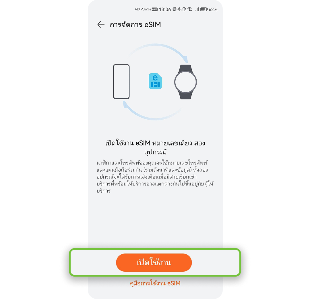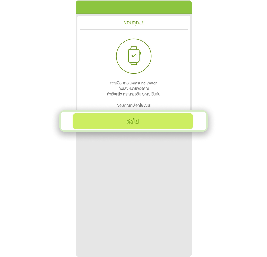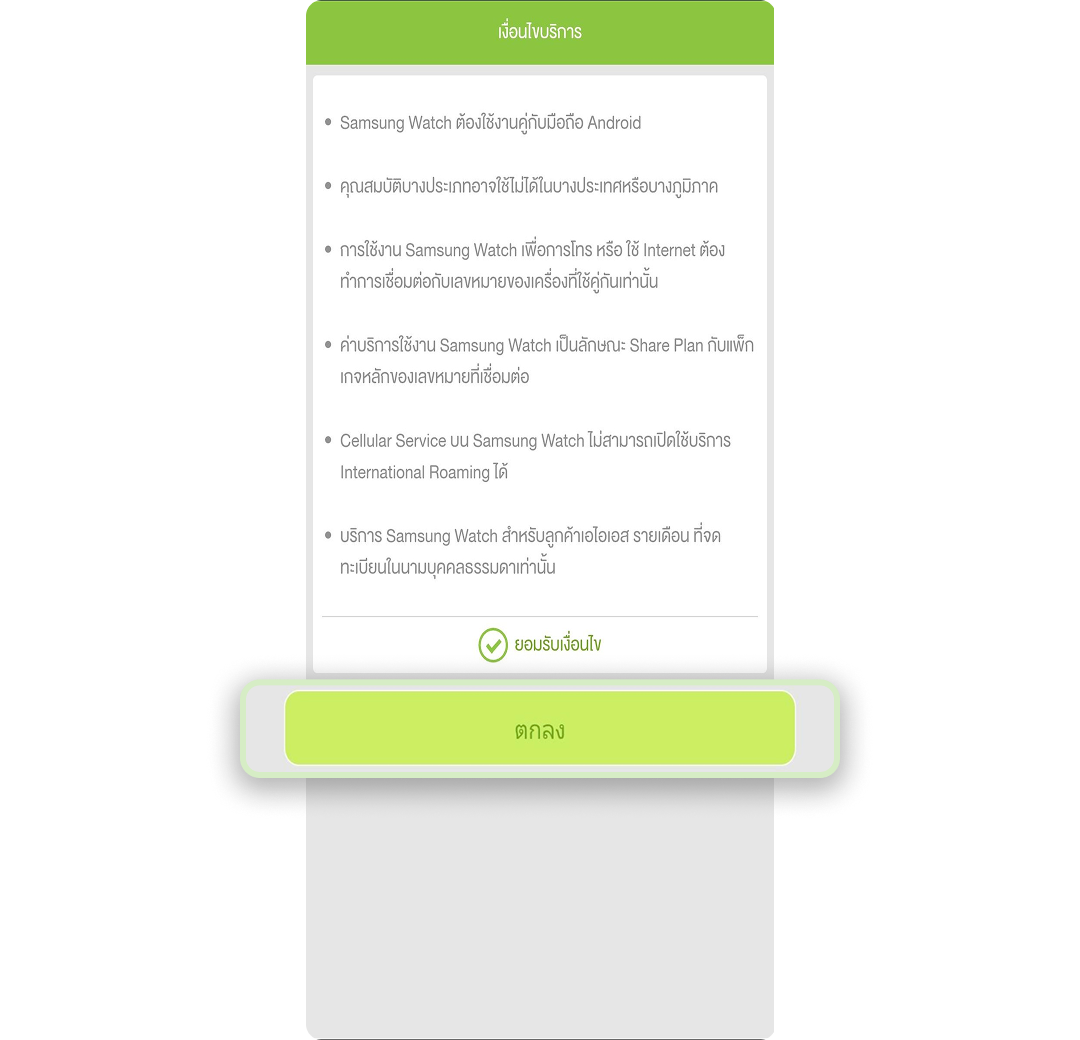 เบอร์ใน iPhone ที่ใช้งานคู่กับ Apple Watch จะต้องเปิดใช้บริการ Data Roaming สามารถตรวจสอบได้จาก application myAIS รายละเอียดเพิ่มเติมติดต่อ AIS Call Center 1175