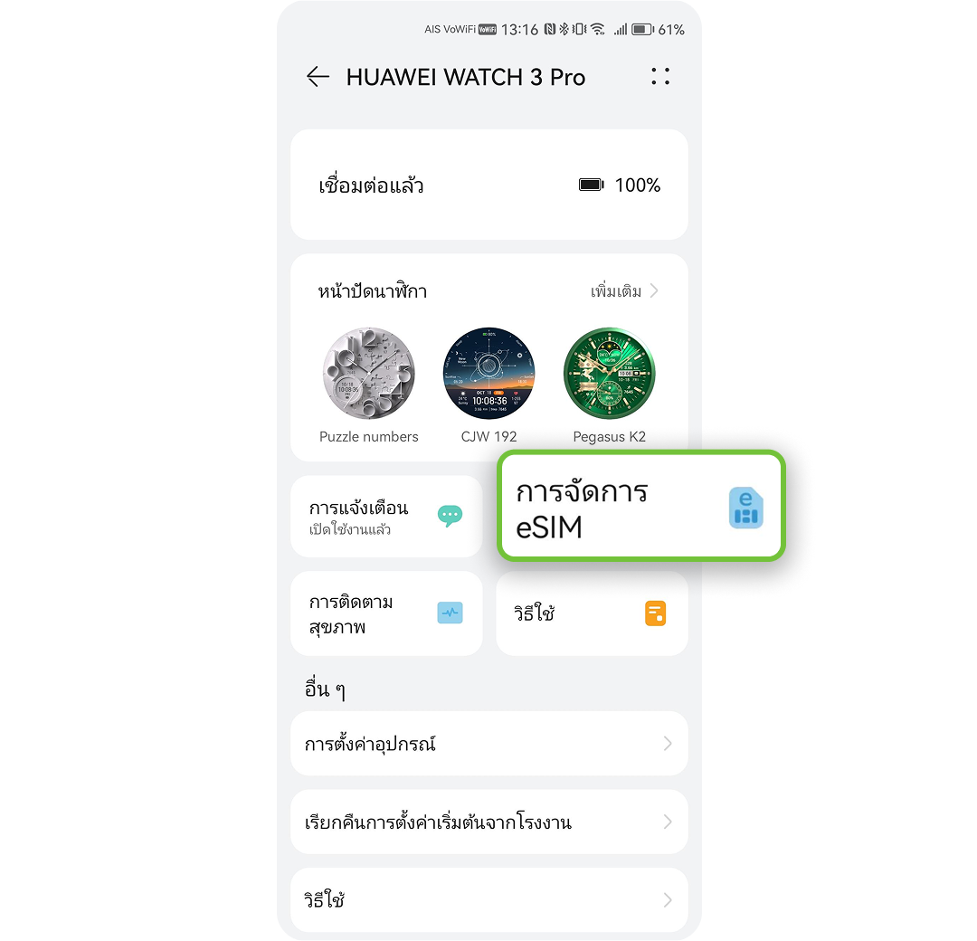 บริการที่ให้สามารถใช้งานโทรศัพท์, รับข้อความ, เชื่อมต่ออินเทอร์เน็ตโดยตรงผ่าน Smart Watch ภายใต้เครือข่าย AIS โดยคิดค่าใช้บริการตามแพ็กเกจร่วมกับหมายเลขโทรศัพท์ที่ใช้ activate บริการ โดยไม่จำเป็นต้องเปิดโทรศัพท์ หรือมีโทรศัพท์ไว้ใกล้ตัว หรือพกติดตัวตลอดเวลา