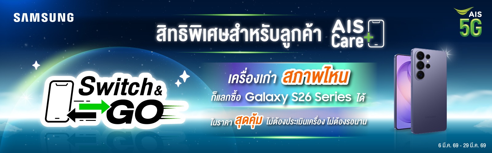 1. เครื่องที่นำมาร่วมแคมเปญ Switch & Goจะต้องมีบริการ AIS Care+ หรือ AIS Care+ with Samsung Care Services จนถึงวันที่ทำสัญญาซื้อขายเครื่อง