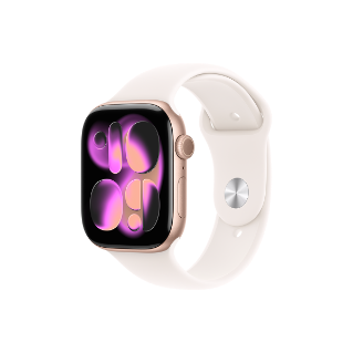 Apple Watch Series 11 รุ่น GPS ตัวเรือนอะลูมิเนียม สีโรสโกลด์ 46 มม. สายแบบ Sport Band สีชมพูบลัช ขนาด S/M