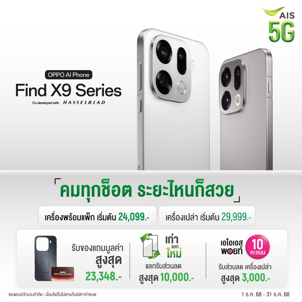 เลือกซื้อมือถือ OPPO รุ่นใหม่ล่าสุด OPPO Find X9 Series และรุ่นยอดนิยม OPPO A6 5G, OPPO Reno14 5G