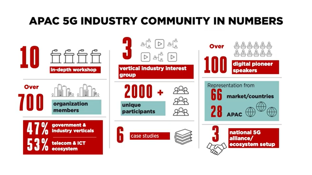 นับจนถึงวันนี้ชุมชน APAC 5G Industry Community จึงได้มีอายุครบ 1 ปีเต็มเป็นที่เรียบร้อย ซึ่งปัจจุบันกลุ่มชุมชนนี้ได้มีองค์กรเข้าร่วมมากกว่า 700 แห่งและสมาชิกกว่า 2,000 คนจาก 66 ประเทศทั่วโลกแล้ว ถือได้ว่าเป็นกลุ่มชุมชน GSMA ที่เติบโตเร็วที่สุดในภูมิภาคนี้เป็นที่เรียบร้อย