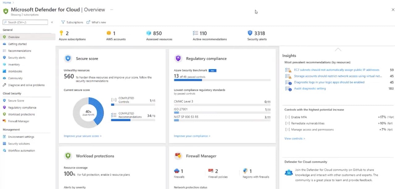 CSPM แจ้งปัญหาและความสำคัญให้กับผู้ใช้ด้วยระบบให้คะแนน หรือ Secure Score ที่เรียงตามลำดับความสำคัญของการปรับปรุงความปลอดภัยแบบต่างๆ ไมโครซอฟท์จะแสดงคำแนะนำให้ทำอะไรบ้างเพื่อแก้ไขความเสี่ยงแต่ละข้อ และความเสี่ยงของแต่ละข้อนั้นกระทบกับทรัพยากรใดในระบบไอทีขององค์กรบ้าง โดยฟีเจอร์ Secure Score นี้อยู่ในแพ็กเกจเบื้องต้นที่ใช้งานได้โดยไม่มีค่าใช้จ่าย
