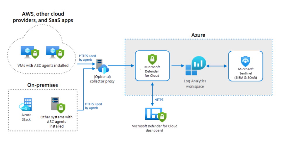 Microsoft Defender for Cloud เป็นแพลตฟอร์มดูแลความปลอดภัยระบบไอทีบนคลาวด์ที่ครอบคลุมตลอดอายุการใช้งานของบริการไอทีในองค์กร โดยแบ่งออกเป็นบริการ 3 ส่วน ได้แก่