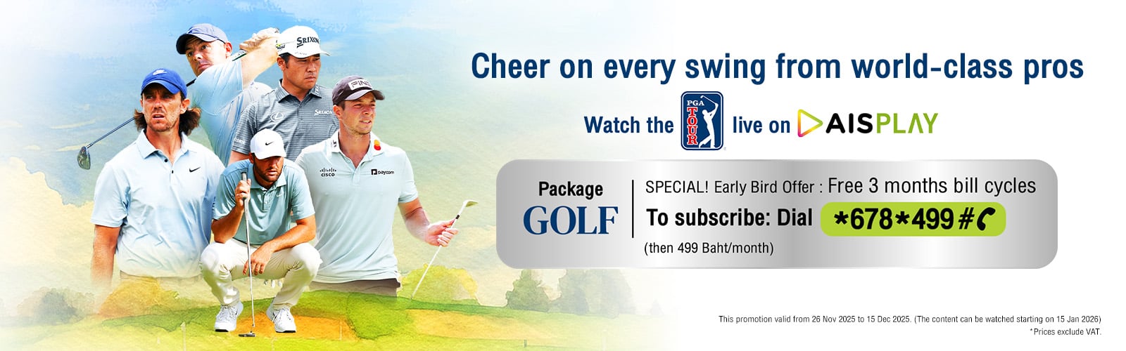 The GOLF Package offer from AIS is exclusively available to AIS Postpaid, Prepaid, and AIS 3BB Fibre3 customers.
