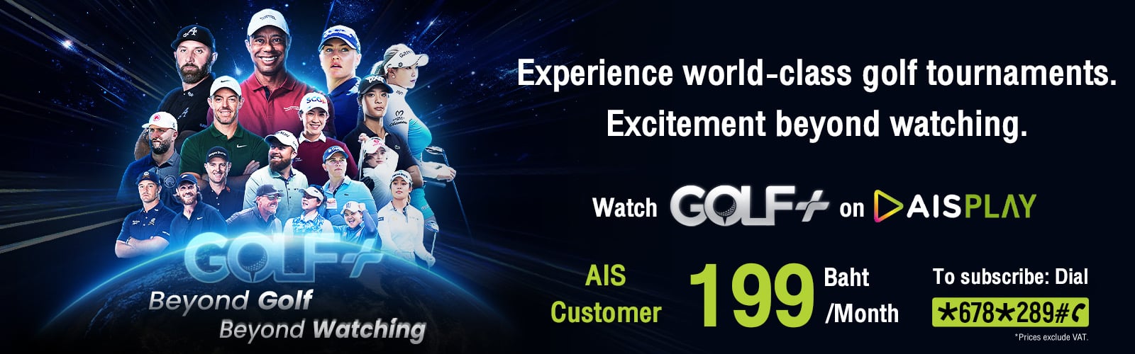 “You have subscribed Golf Plus Monthly Package 199 Baht (Excluded Vat) Package and will be recurred automatically. Unleash the thrill in every competition, providing full enjoyment and excitement for golf fans. Watch Golf on AIS PLAY”