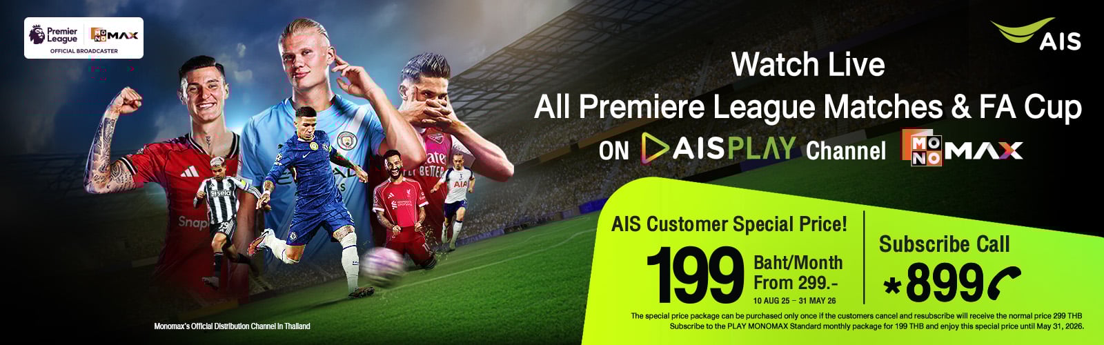 - Watch all live Premier League matches and 63 matches of FA Cup, including highlights and reruns, via AIS PLAY and MONOMAX.