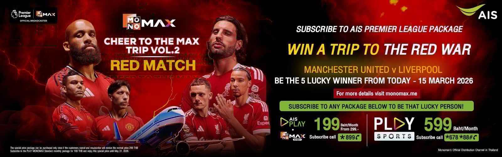 The PLAY MONOMAX Standard special offer from AIS is exclusively available to AIS Postpaid, Prepaid, and AIS Fibre3 customers.