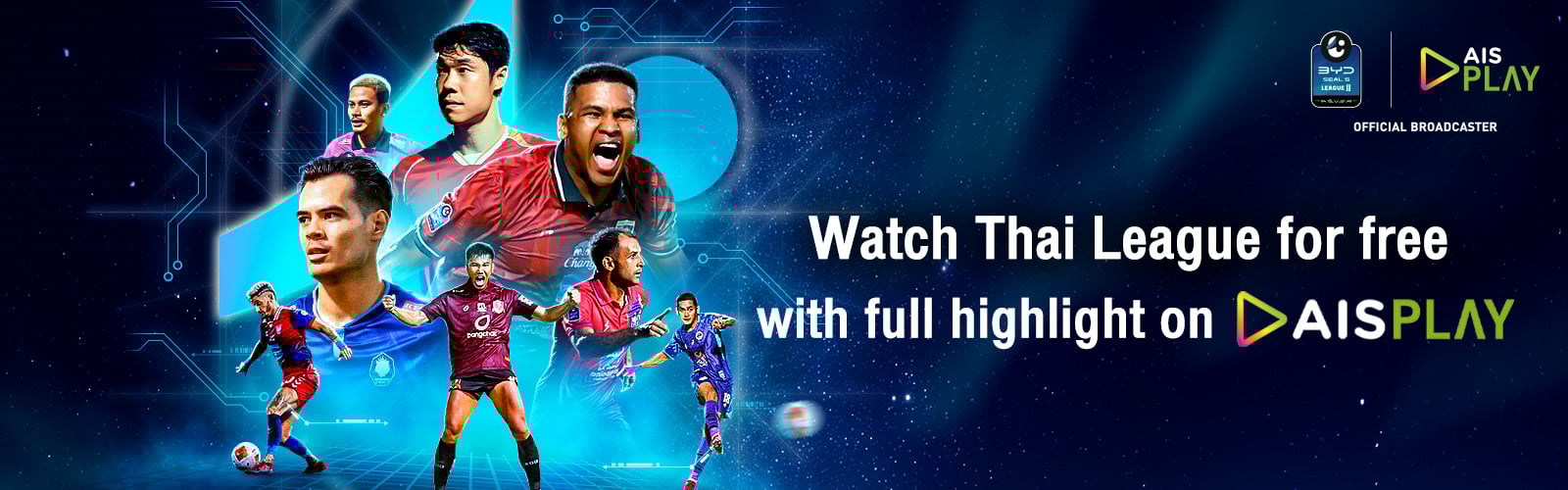 All customers from every network can watch Thai League matches for free — all leagues, every match live — on AIS PLAY.