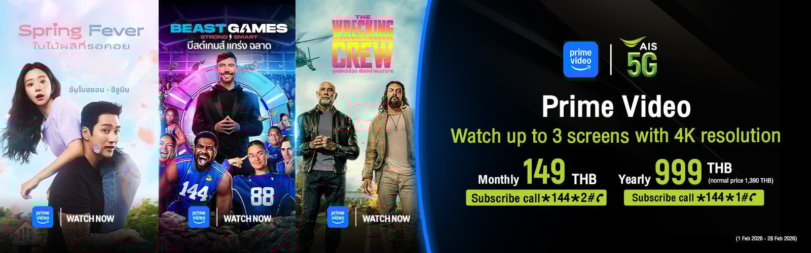 • How to subscribe: Dial *144*1# and call, thereafter the subscription will be confirmed via SMS. To activate the package, the Customers must click the SMS link and enter the AIS mobile number that subscribe to the service within 90 days. Please note that the service package starts from the SMS receiving date. (To activate current account, customers are required to cancel current package that subscribed directly on Prime Video and wait until the end of bill cycle before activate with AIS package)