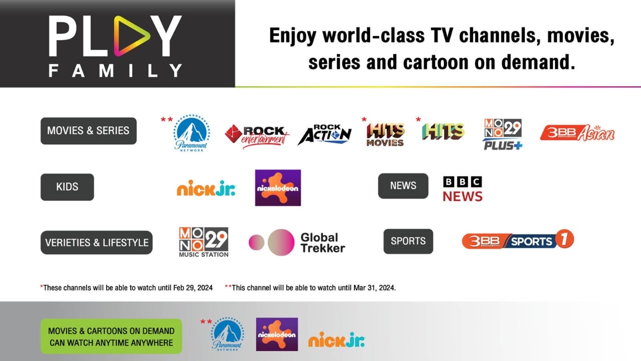 After the end of the free period, the PLAY FAMILY package will be charged at 119 baht per month.