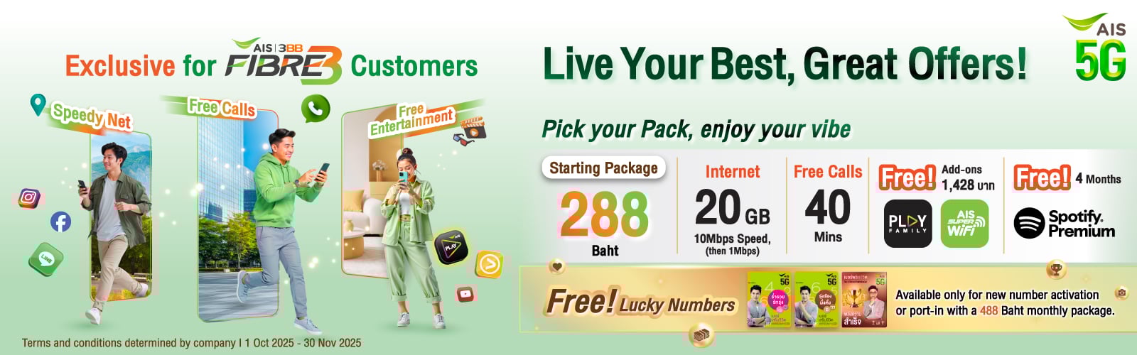 New Sign-ups: Available exclusively for AIS postpaid customers through 3BB Shop.