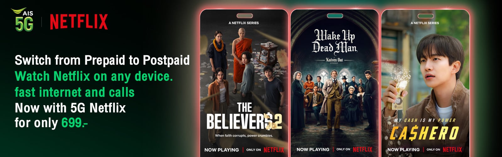 - For subscribers who activate a new number, switch to AIS network, or change from prepaid to postpaid, enjoy the special offers for 12 billing cycles.