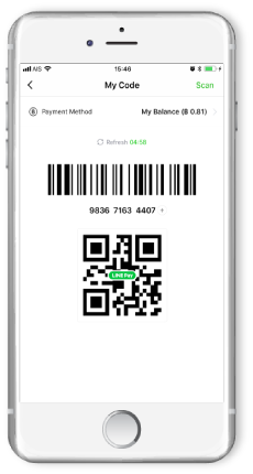 สแกนบาร์โค้ด หรือ ใส่เลข My Code ที่แสดงบนแอปพลิเคชั่นของลูกค้า