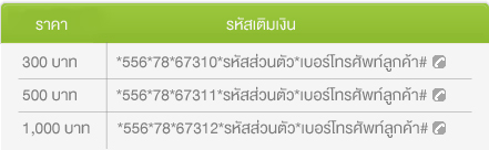 กด รหัสเติมเงิน ตามราคาบัตรที่ต้องการซื้อ แล้วโทรออก